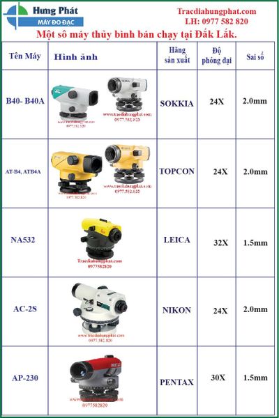 Tại Đắk Lắk chúng tôi bán các loại máy thủy bình có thương hiệu nổi tiếng và được các kỹ sư tin dùng như:
