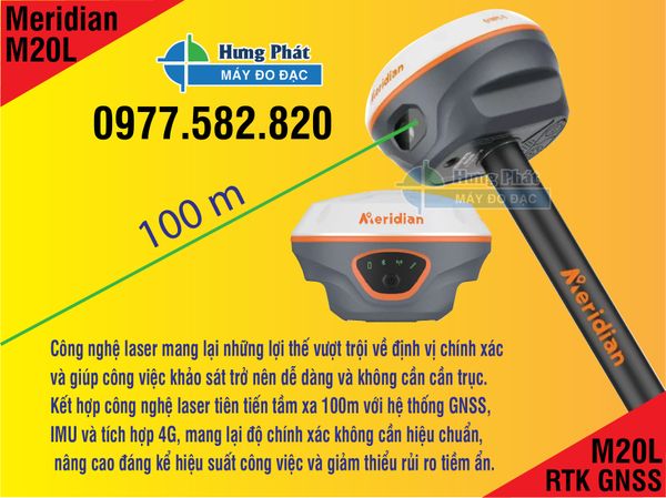 Máy đo GNSS RTK laser xanh Meridian M20L là một giải pháp tiên tiến kết hợp công nghệ laser tiên tiến IMU và tích hợp 4G. Thiết bị không cần hiệu chuẩn, giúp tăng đáng kể hiệu suất vận hành và đo laser giúp cải thiện hiệu suất và giảm thiểu các yếu tố rủi ro trong khảo sát không cần cần trục. Bộ thu laser xanh M20L mang đến một phương thức mới để làm việc trong các tình huống khó khăn, bất khả thi và nguy hiểm với độ chính xác cao, bao gồm cắm cọc ven sông, khảo sát cọc cầu, khảo sát độ cao, khảo sát đô thị, khảo sát kết hợp ngoài trời và trong nhà, khảo sát nhà máy điện, v.v.
